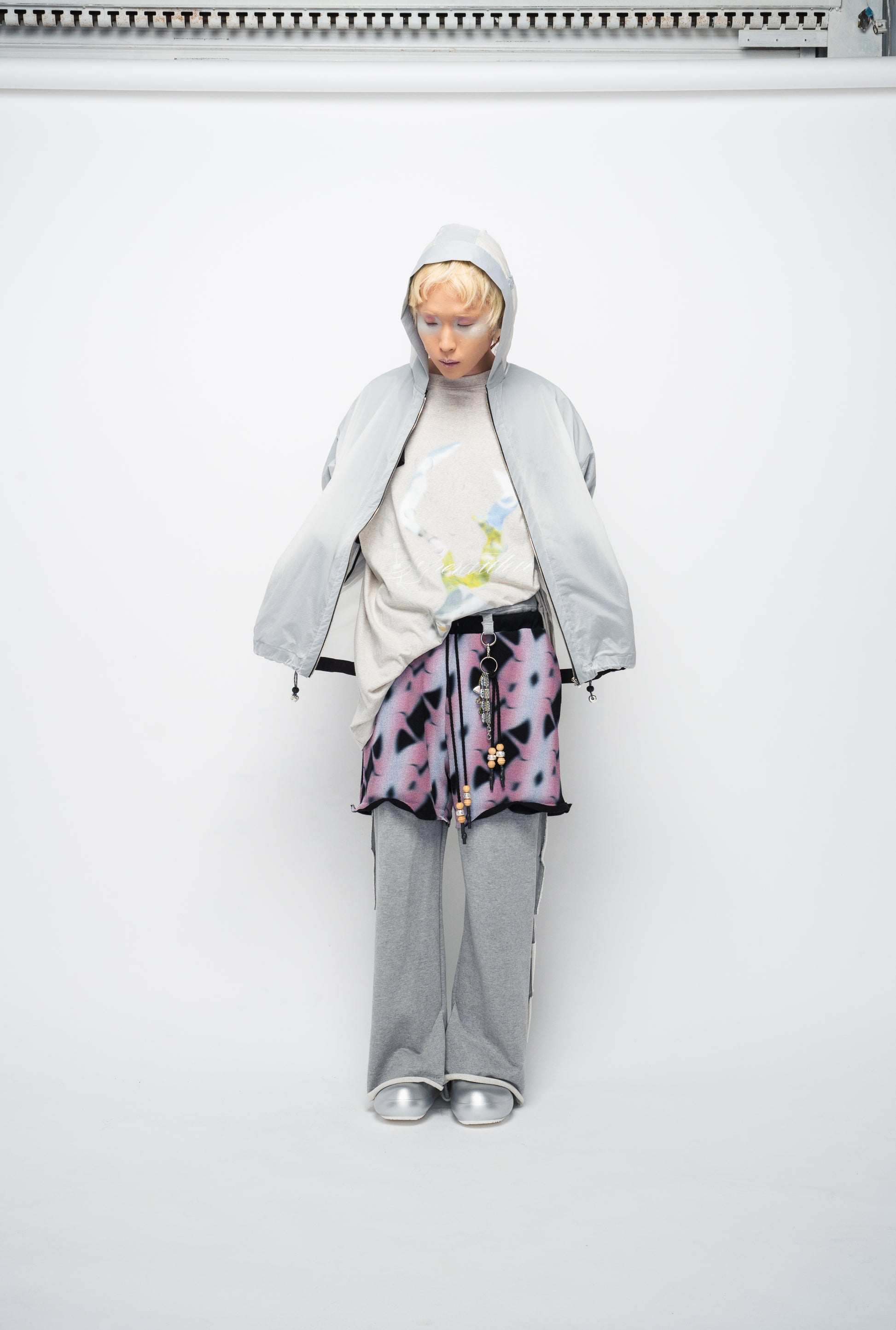 The vivid colors scattered across the entire T-shirt via injket printing are inspired by "AMORPHOUS UTOPIA" and the beauty found within chaos. The AMORPHIA logo in the center is processed with an opaque finish, with amorphous particles spreading out from it. Two contrasting texts that spell out the collection's keyword "HYPERCULTURE" are also featured.