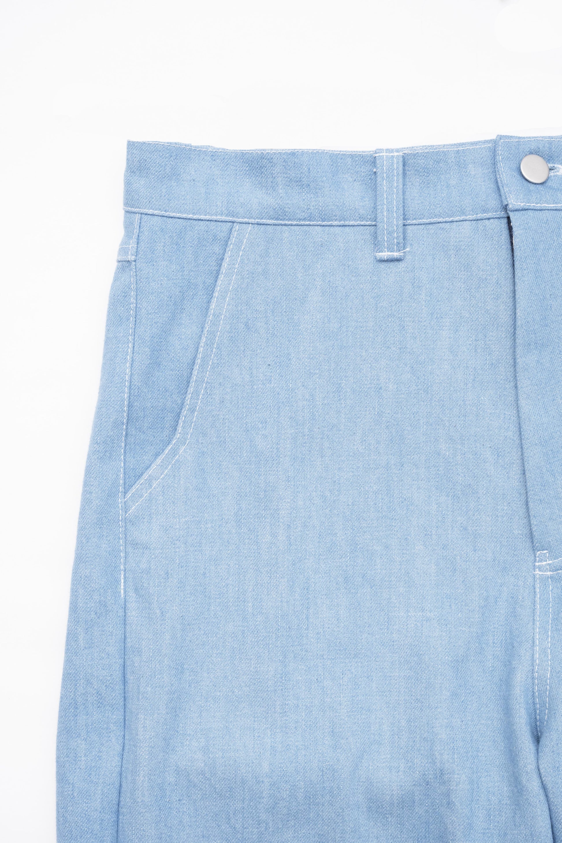 A collaboration item with the artist Hana Koketsu. The design, which reverses the color on the front and back, creates a unique look unlike any other. The key features are the eye-catching design and sophisticated atmosphere visible from all 360 degrees. It utilizes a soft-textured denim fabric that has been subjected to a one-wash process. Available in 4 sizes.