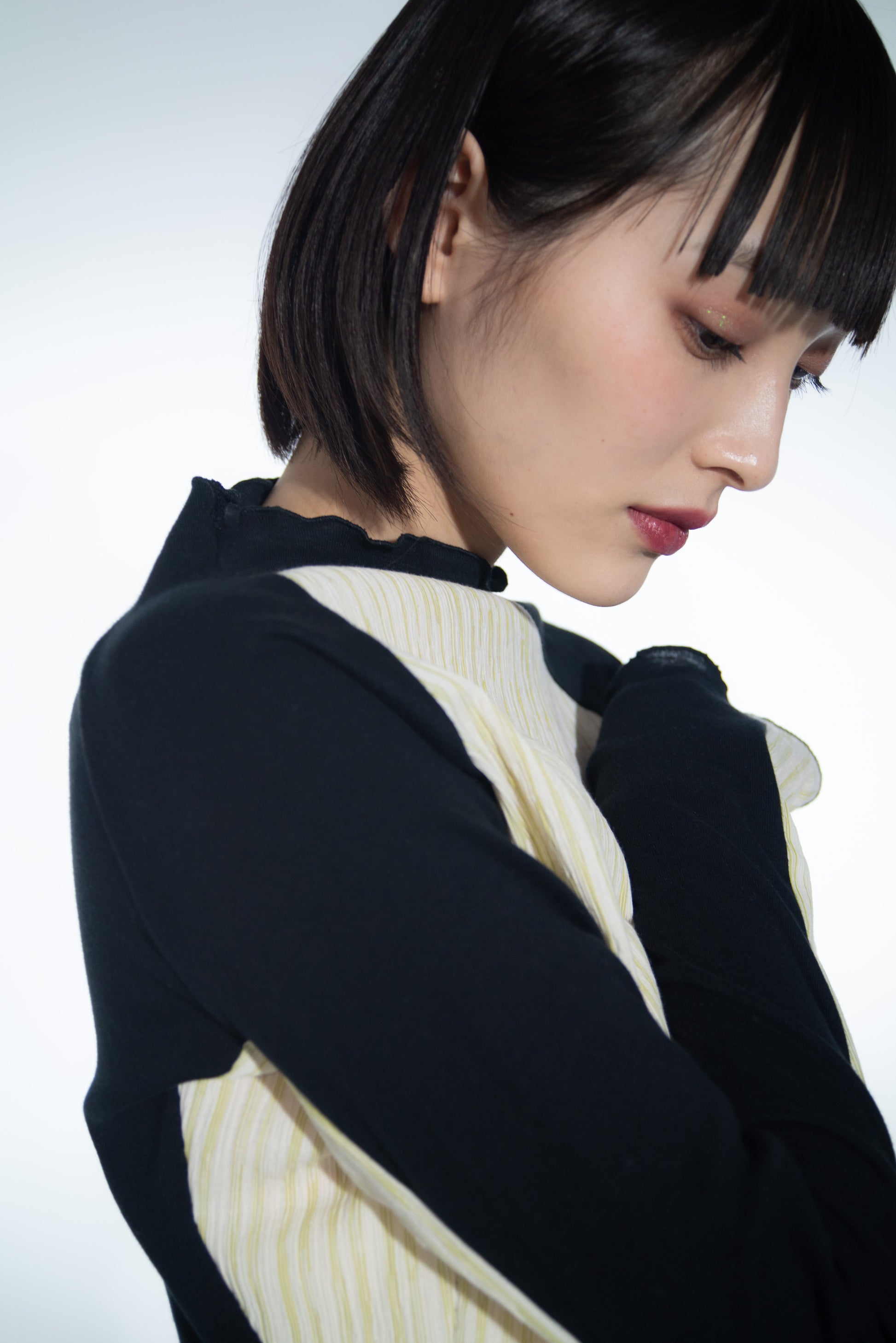 シボシボとした表情に繊細なストライプが施された楊柳生地を組み合わせました。
