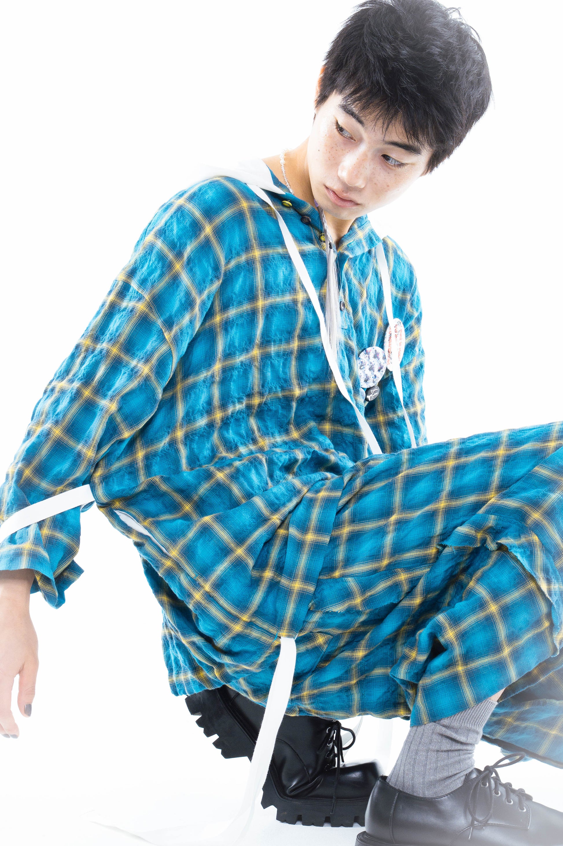 グラデーションがかった淡いチェック柄がどこか懐かしさを感じさせる1着。