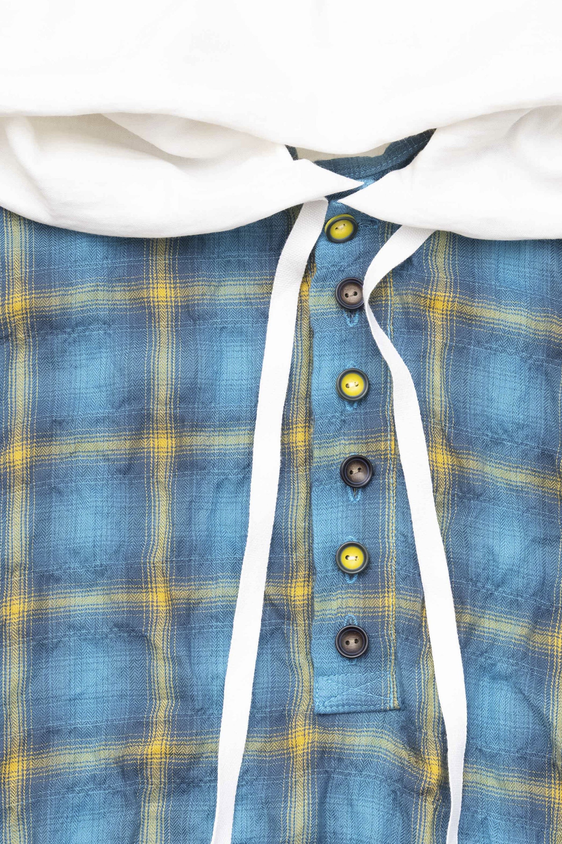 前開きには2色のボタンをあしらい、さりげない遊び心を表現。