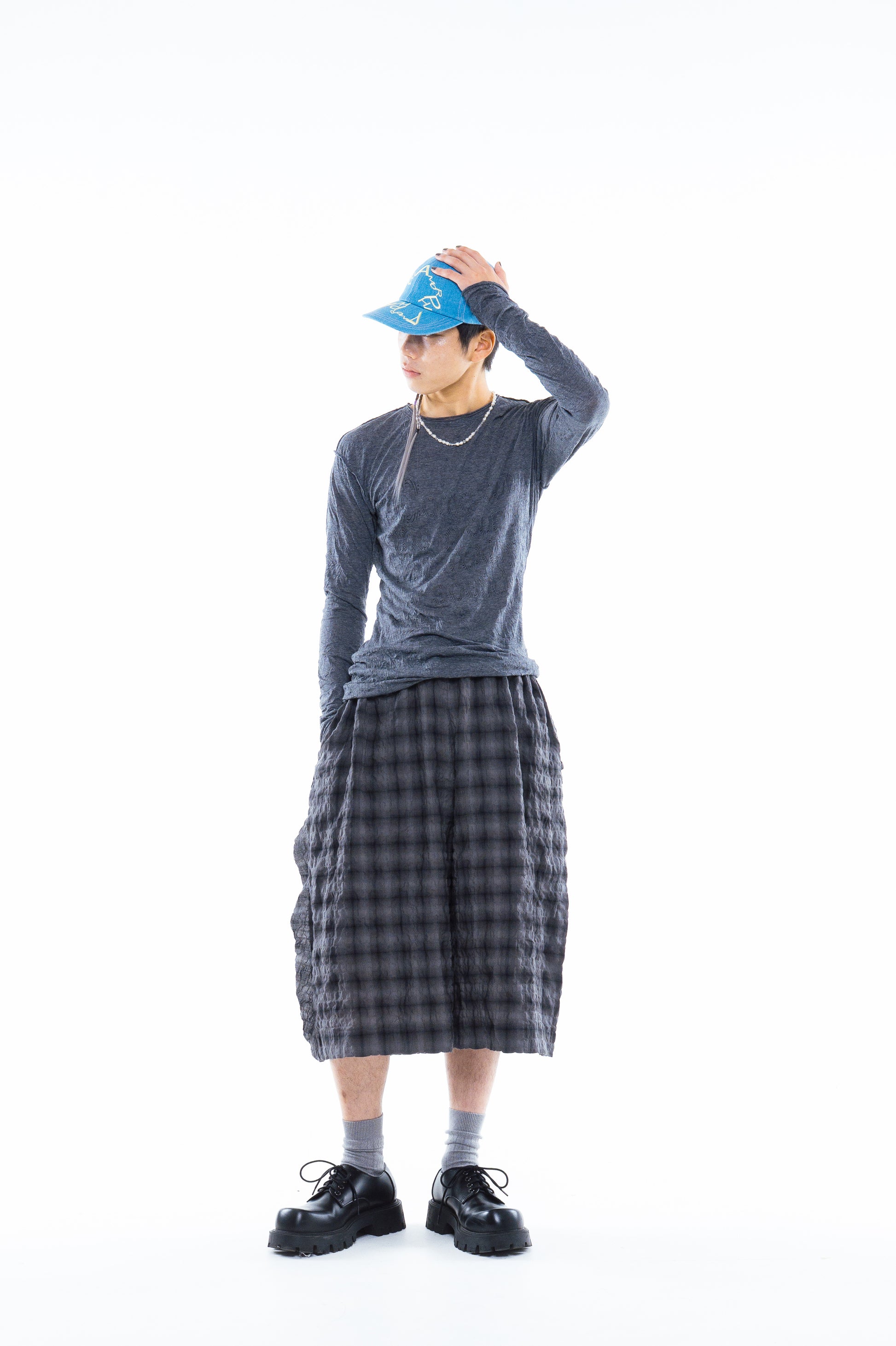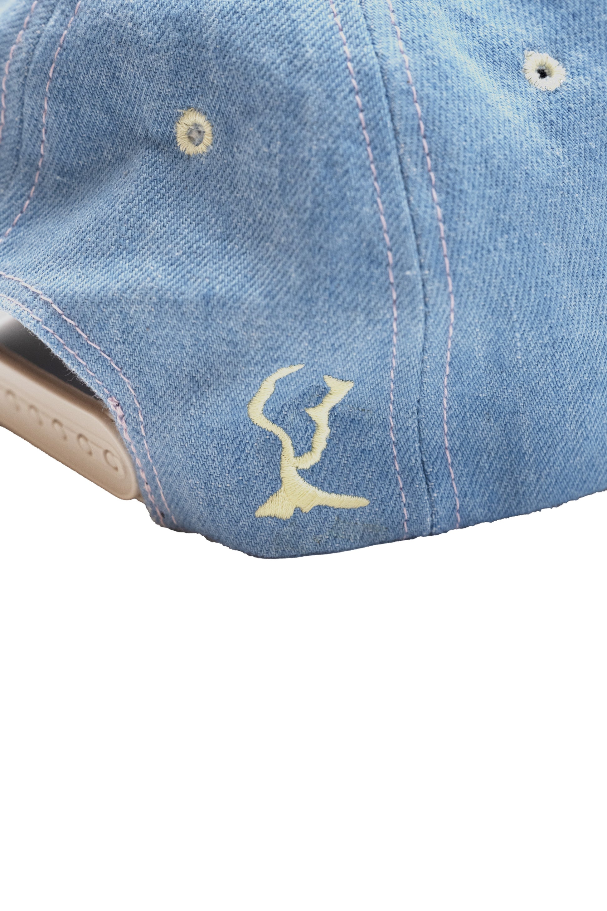 Utilizes a soft-textured denim fabric that has been subjected to a one-wash process. The design, which arranges the letters of "AMORPHIA" in a circular pattern, is striking. The contrasting embroidery serves as an accent. A snap adjuster is used on the back, allowing for smooth size adjustment.